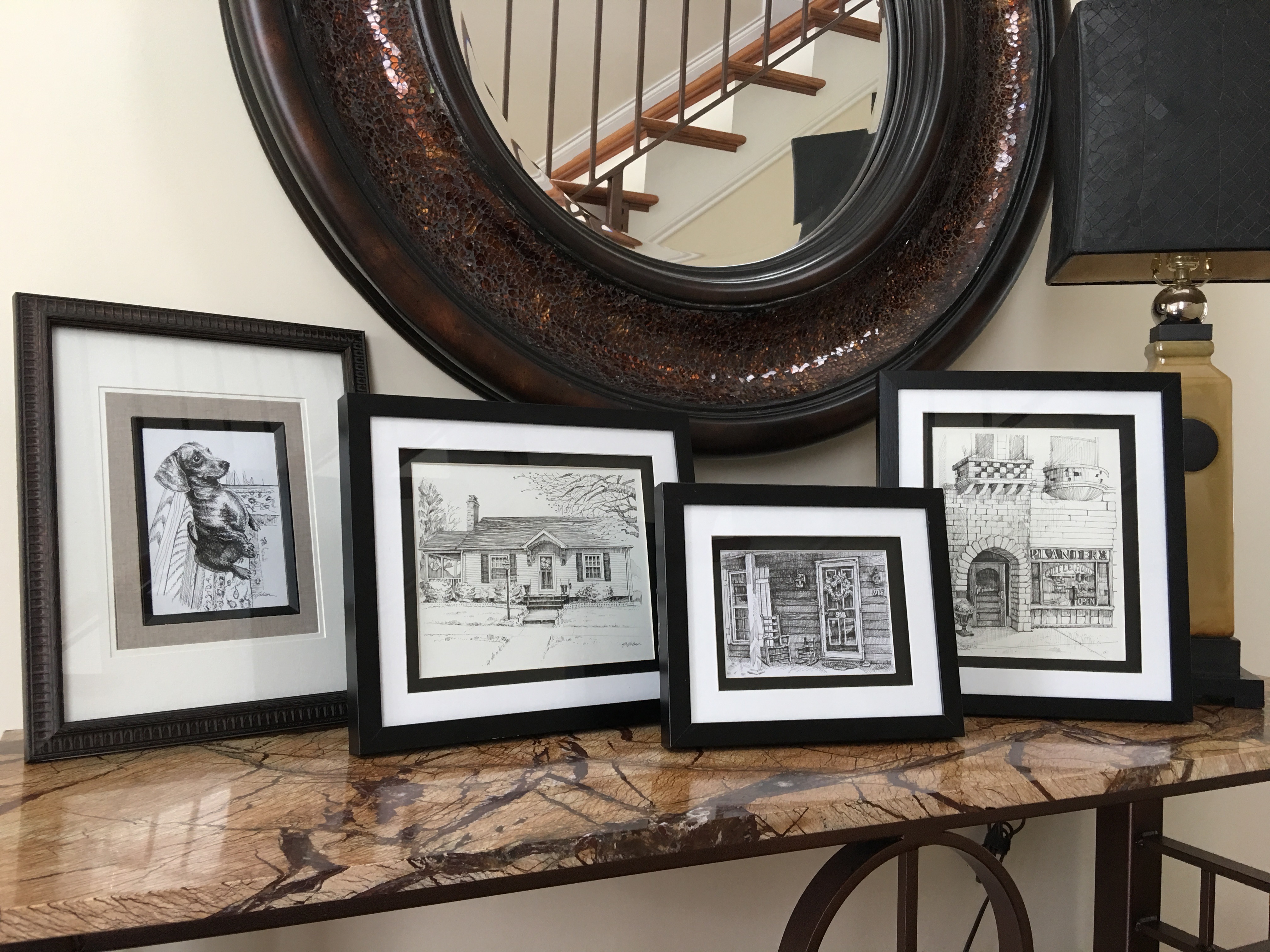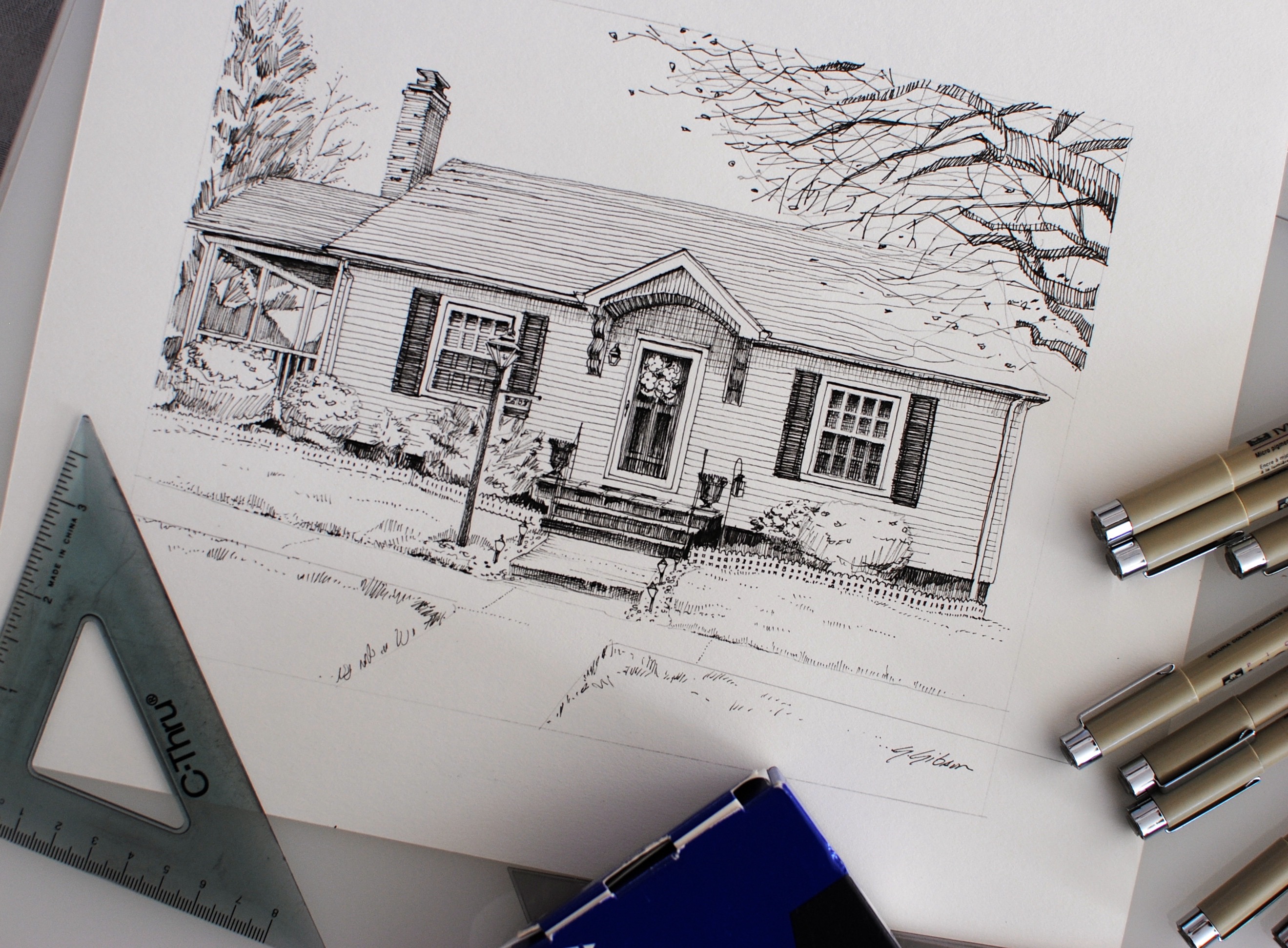 Over the past few years I’ve been asked to create original pen & ink drawings of clients homes, commercial buildings, pets, gardens, entrance doors, barns and personal heirlooms with special meaning to loved one or items representing a friend or family member who has passed.